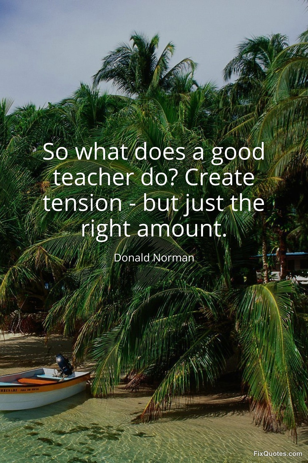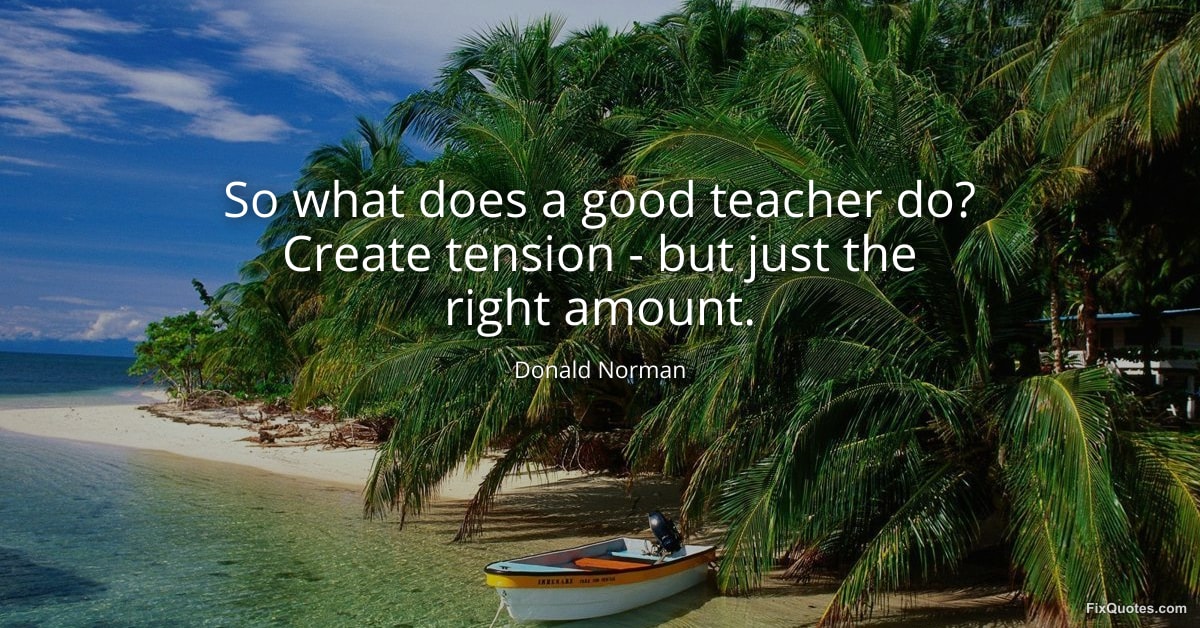 Norman, Donald. (2026, January 17). So what does a good teacher do? Create tension - but just the right amount. FixQuotes. https://fixquotes.com/quotes/so-what-does-a-good-teacher-do-create-tension-58126/