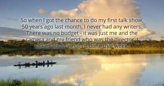 "So when I got the chance to do my first talk show, 50 years ago last month, I never had any writers. There was no budget - it was just me and the camera and my friend who was the director. I talked about what I'd done that week." FixQuotes, 16 Jan. 2026, https://fixquotes.com/quotes/so-when-i-got-the-chance-to-do-my-first-talk-show-94468/. Accessed 12 Feb. 2026.