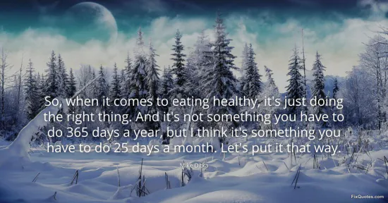Ditka, Mike. (2026, January 17). So, when it comes to eating healthy, it's just doing the right thing. And it's not something you have to do 365 days a year, but I think it's something you have to do 25 days a month. Let's put it that way. FixQuotes. https://fixquotes.com/quotes/so-when-it-comes-to-eating-healthy-its-just-doing-29453/