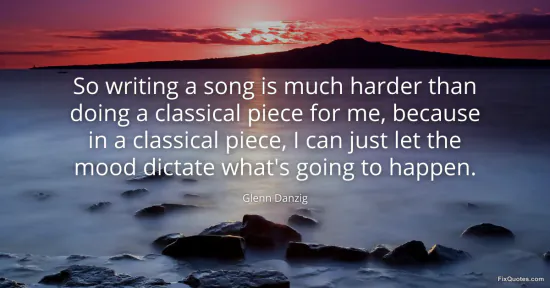 Danzig, Glenn. (2026, January 16). So writing a song is much harder than doing a classical piece for me, because in a classical piece, I can just let the mood dictate what's going to happen. FixQuotes. https://fixquotes.com/quotes/so-writing-a-song-is-much-harder-than-doing-a-91069/