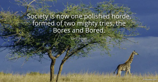 Byron, Lord. "Society is now one polished horde, formed of two mighty tries, the Bores and Bored." FixQuotes. February 12, 2026. https://fixquotes.com/quotes/society-is-now-one-polished-horde-formed-of-two-8384/.