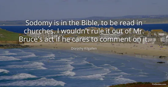 "Sodomy is in the Bible, to be read in churches. I wouldn't rule it out of Mr. Bruce's act if he cares to comment on it." FixQuotes, 16 Jan. 2026, https://fixquotes.com/quotes/sodomy-is-in-the-bible-to-be-read-in-churches-i-100127/. Accessed 6 Feb. 2026.