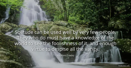Cowley, Abraham. (2026, January 15). Solitude can be used well by very few people. They who do must have a knowledge of the world to see the foolishness of it, and enough virtue to despise all the vanity. FixQuotes. https://fixquotes.com/quotes/solitude-can-be-used-well-by-very-few-people-they-166880/