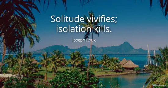 Roux, Joseph. (2026, January 14). Solitude vivifies; isolation kills. FixQuotes. https://fixquotes.com/quotes/solitude-vivifies-isolation-kills-156379/
