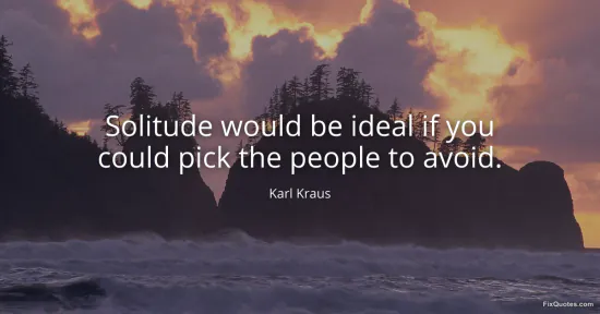 Kraus, Karl. (n.d.). Solitude would be ideal if you could pick the people to avoid. FixQuotes. https://fixquotes.com/quotes/solitude-would-be-ideal-if-you-could-pick-the-157330/