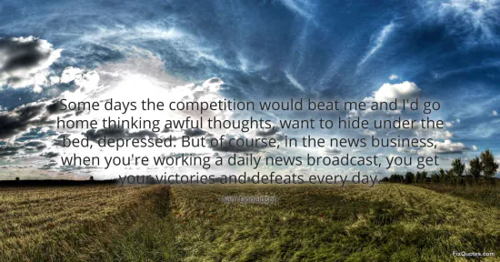 "Some days the competition would beat me and I'd go home thinking awful thoughts, want to hide under the bed, depressed. But of course, in the news business, when you're working a daily news broadcast, you get your victories and defeats every day." FixQuotes, 16 Jan. 2026, https://fixquotes.com/quotes/some-days-the-competition-would-beat-me-and-id-go-106373/. Accessed 18 Feb. 2026.