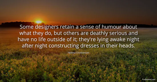 Christensen, Helena. (2026, January 15). Some designers retain a sense of humour about what they do, but others are deathly serious and have no life outside of it; they're lying awake night after night constructing dresses in their heads. FixQuotes. https://fixquotes.com/quotes/some-designers-retain-a-sense-of-humour-about-172621/