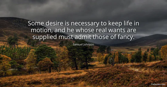 Johnson, Samuel. "Some desire is necessary to keep life in motion, and he whose real wants are supplied must admit those of fancy." FixQuotes. January 15, 2026. https://fixquotes.com/quotes/some-desire-is-necessary-to-keep-life-in-motion-21087/.