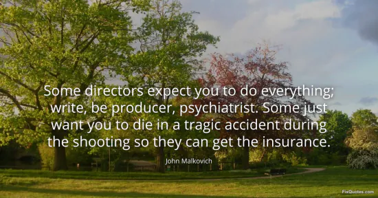 Malkovich, John. "Some directors expect you to do everything; write, be producer, psychiatrist. Some just want you to die in a tragic accident during the shooting so they can get the insurance." FixQuotes. January 17, 2026. https://fixquotes.com/quotes/some-directors-expect-you-to-do-everything-write-59083/.