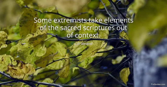 Stevens, Cat. "Some extremists take elements of the sacred scriptures out of context." FixQuotes. January 17, 2026. https://fixquotes.com/quotes/some-extremists-take-elements-of-the-sacred-33149/.