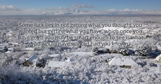 Keillor, Garrison. (2026, January 15). Some luck lies in not getting what you thought you wanted but getting what you have, which once you have got it you may be smart enough to see is what you would have wanted had you known. FixQuotes. https://fixquotes.com/quotes/some-luck-lies-in-not-getting-what-you-thought-31303/