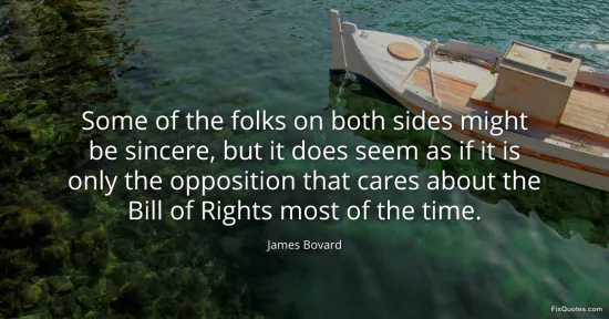 Bovard, James. "Some of the folks on both sides might be sincere, but it does seem as if it is only the opposition that cares about the Bill of Rights most of the time." FixQuotes. January 17, 2026. https://fixquotes.com/quotes/some-of-the-folks-on-both-sides-might-be-sincere-80045/.