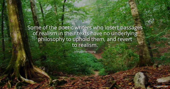 Young, Marguerite. (2026, January 15). Some of the poetic writers who insert passages of realism in their texts have no underlying philosophy to uphold them, and revert to realism. FixQuotes. https://fixquotes.com/quotes/some-of-the-poetic-writers-who-insert-passages-of-147565/