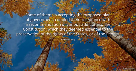 Cushing, Caleb. (2026, January 18). Some of them, in accepting the proposed plan of government, coupled their acceptance with a recommendation of various additions to the Constitution, which they deemed essential to the preservation of the rights of the States, or of the People. FixQuotes. https://fixquotes.com/quotes/some-of-them-in-accepting-the-proposed-plan-of-6034/
