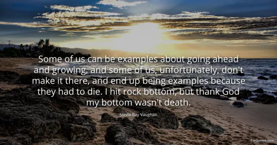 Vaughan, Stevie Ray. "Some of us can be examples about going ahead and growing, and some of us, unfortunately, don't make it there, and end up being examples because they had to die. I hit rock bottom, but thank God my bottom wasn't death." FixQuotes. January 15, 2026. https://fixquotes.com/quotes/some-of-us-can-be-examples-about-going-ahead-and-97963/.