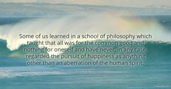 Grierson, John. "Some of us learned in a school of philosophy which taught that all was for the common good and nothing for oneself and have never, in any case, regarded the pursuit of happiness as anything other than an aberration of the human spirit." FixQuotes. January 18, 2026. https://fixquotes.com/quotes/some-of-us-learned-in-a-school-of-philosophy-17622/.
