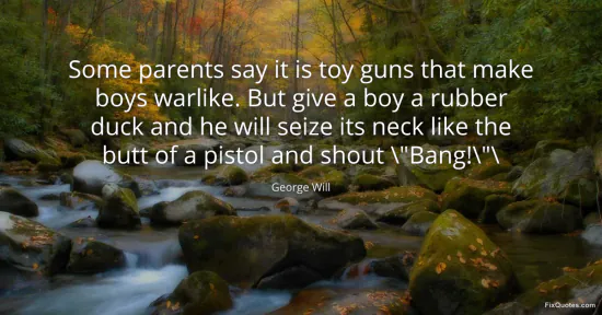 Will, George. (2026, February 18). Some parents say it is toy guns that make boys warlike. But give a boy a rubber duck and he will seize its neck like the butt of a pistol and shout \"Bang!\"\. FixQuotes. https://fixquotes.com/quotes/some-parents-say-it-is-toy-guns-that-make-boys-67945/