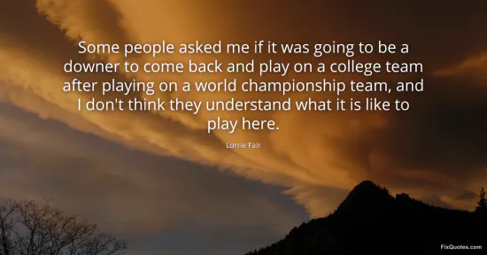 Fair, Lorrie. "Some people asked me if it was going to be a downer to come back and play on a college team after playing on a world championship team, and I don't think they understand what it is like to play here." FixQuotes. January 16, 2026. https://fixquotes.com/quotes/some-people-asked-me-if-it-was-going-to-be-a-87776/.