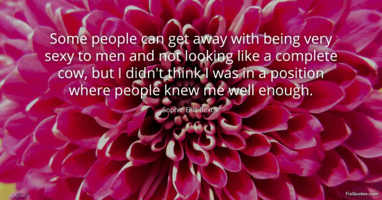 Bextor, Sophie Ellis. (2026, January 16). Some people can get away with being very sexy to men and not looking like a complete cow, but I didn't think I was in a position where people knew me well enough. FixQuotes. https://fixquotes.com/quotes/some-people-can-get-away-with-being-very-sexy-to-116977/