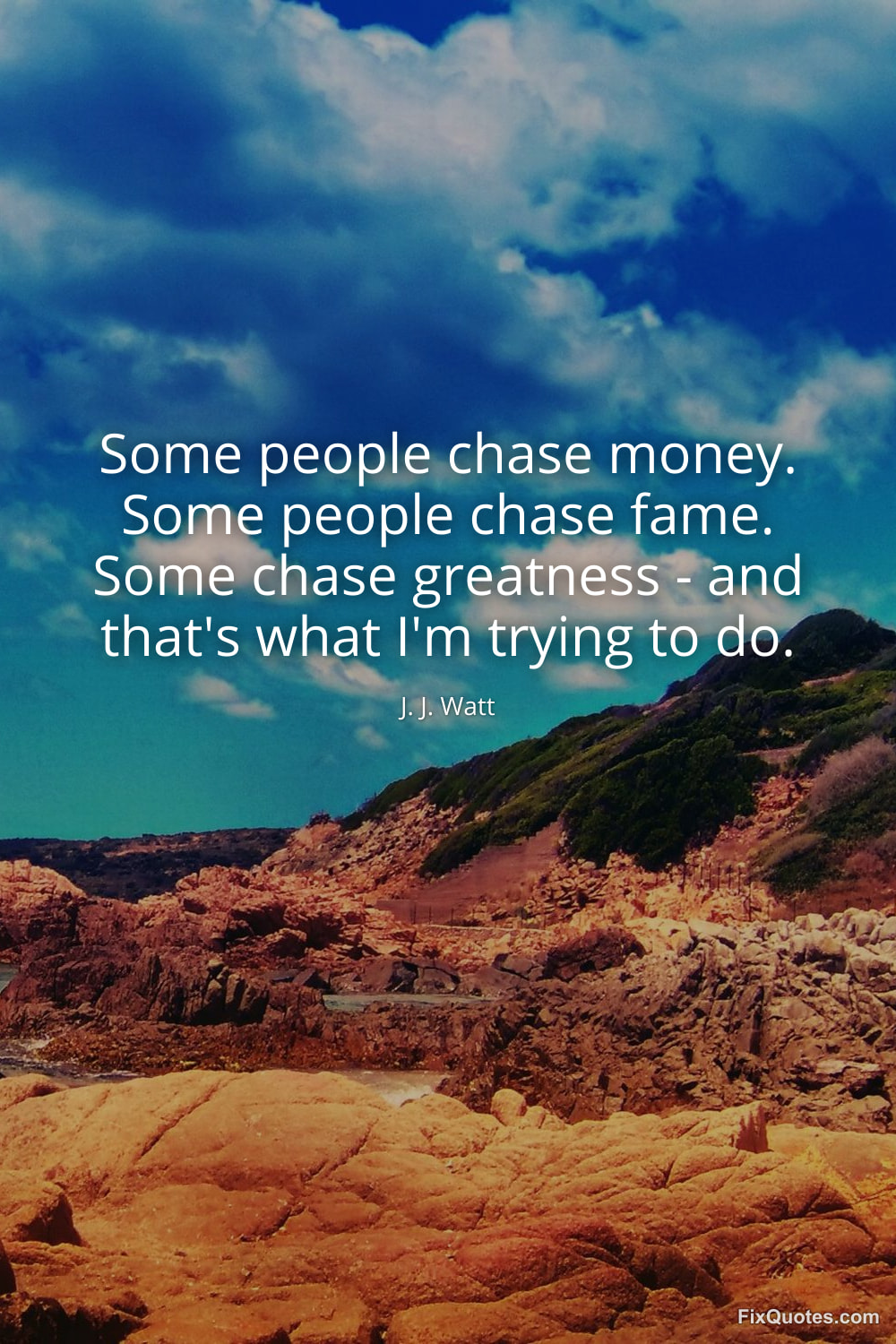 Watt, J. J. "Some people chase money. Some people chase fame. Some chase greatness - and that's what I'm trying to do." FixQuotes. January 11, 2026. https://fixquotes.com/quotes/some-people-chase-money-some-people-chase-fame-183859/.