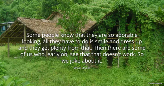 Markoe, Merrill. "Some people know that they are so adorable looking, all they have to do is smile and dress up and they get plenty from that. Then there are some of us who, early on, see that that doesn't work. So we joke about it." FixQuotes. January 17, 2026. https://fixquotes.com/quotes/some-people-know-that-they-are-so-adorable-78313/.