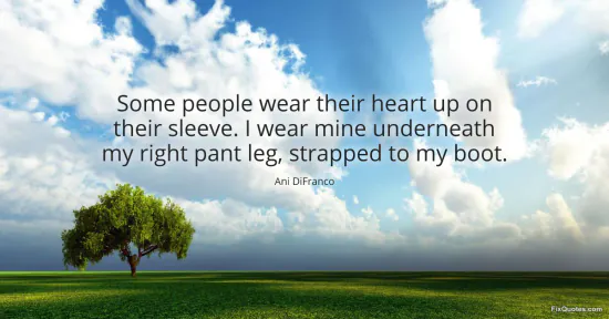 DiFranco, Ani. "Some people wear their heart up on their sleeve. I wear mine underneath my right pant leg, strapped to my boot." FixQuotes. January 16, 2026. https://fixquotes.com/quotes/some-people-wear-their-heart-up-on-their-sleeve-i-131717/.