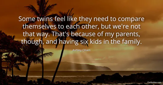Olsen, Ashley. (n.d.). Some twins feel like they need to compare themselves to each other, but we're not that way. That's because of my parents, though, and having six kids in the family. FixQuotes. https://fixquotes.com/quotes/some-twins-feel-like-they-need-to-compare-172229/