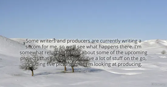Gerard, Gil. (2026, January 17). Some writers and producers are currently writing a sitcom for me, so we'll see what happens there. I'm somewhat reluctant to talk about some of the upcoming projects that I'm working on; I've a lot of stuff on the go, including five pictures that I'm looking at producing. FixQuotes. https://fixquotes.com/quotes/some-writers-and-producers-are-currently-writing-67910/