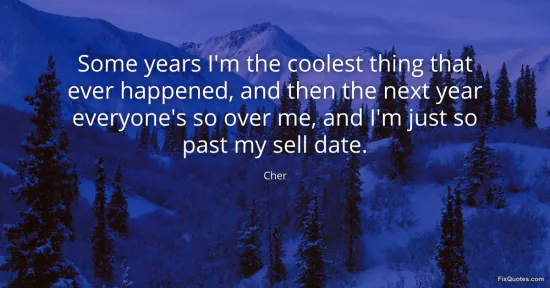 Cher. "Some years I'm the coolest thing that ever happened, and then the next year everyone's so over me, and I'm just so past my sell date." FixQuotes. January 17, 2026. https://fixquotes.com/quotes/some-years-im-the-coolest-thing-that-ever-40032/.