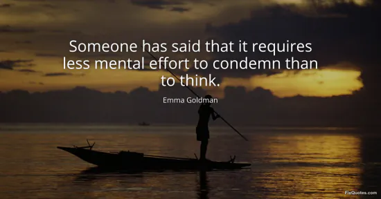 Goldman, Emma. (2026, January 17). Someone has said that it requires less mental effort to condemn than to think. FixQuotes. https://fixquotes.com/quotes/someone-has-said-that-it-requires-less-mental-60153/