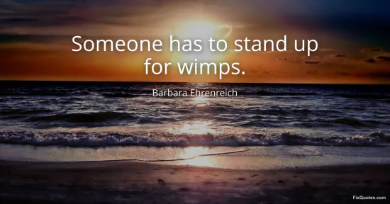 Ehrenreich, Barbara. (2026, January 16). Someone has to stand up for wimps. FixQuotes. https://fixquotes.com/quotes/someone-has-to-stand-up-for-wimps-123863/