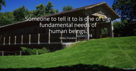 Franklin, Miles. "Someone to tell it to is one of the fundamental needs of human beings." FixQuotes. January 16, 2026. https://fixquotes.com/quotes/someone-to-tell-it-to-is-one-of-the-fundamental-130759/.