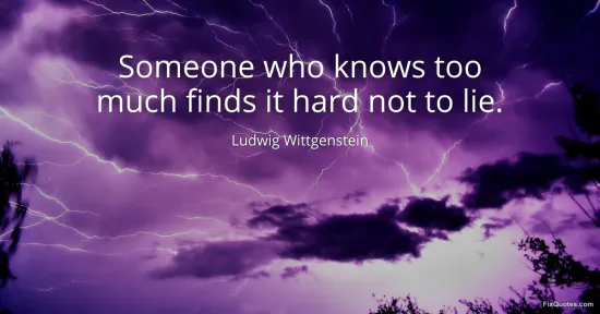 Wittgenstein, Ludwig. (2026, January 15). Someone who knows too much finds it hard not to lie. FixQuotes. https://fixquotes.com/quotes/someone-who-knows-too-much-finds-it-hard-not-to-8724/