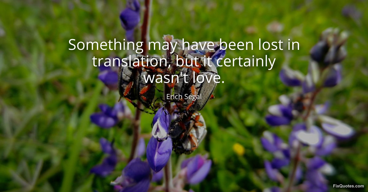 Segal, Erich. "Something may have been lost in translation, but it certainly wasn't love." FixQuotes. January 15, 2026. https://fixquotes.com/quotes/something-may-have-been-lost-in-translation-but-173439/.