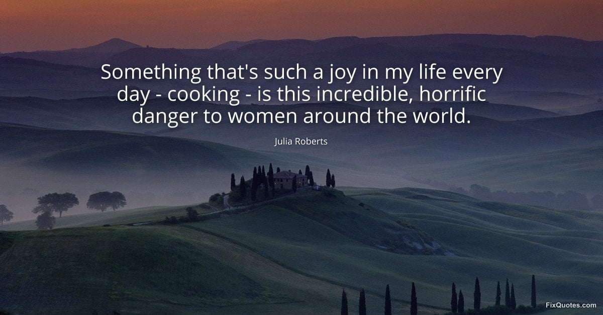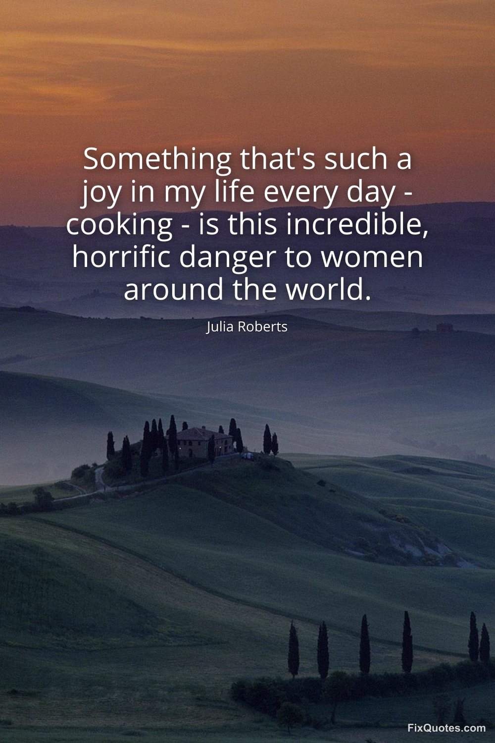 Roberts, Julia. (2026, January 16). Something that's such a joy in my life every day - cooking - is this incredible, horrific danger to women around the world. FixQuotes. https://fixquotes.com/quotes/something-thats-such-a-joy-in-my-life-every-day-92324/