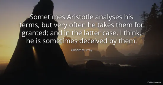 Murray, Gilbert. "Sometimes Aristotle analyses his terms, but very often he takes them for granted; and in the latter case, I think, he is sometimes deceived by them." FixQuotes. January 16, 2026. https://fixquotes.com/quotes/sometimes-aristotle-analyses-his-terms-but-very-105146/.