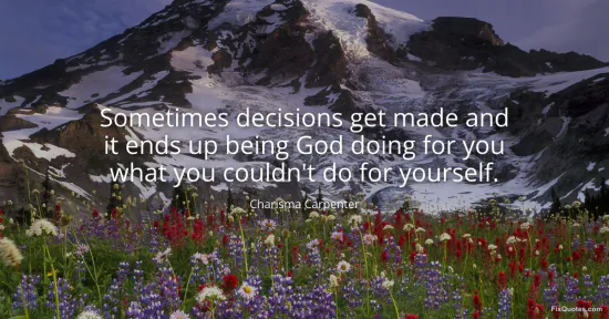 It lands like a backstage confession dressed up as faith: not quite surrender, not quite self-help, but a way to narrate upheaval without admitting defeat. Charisma Carpenter frames “decisions” as something that “get made” rather than chosen, a subtle grammatical dodge that mirrors how people talk after a door has slammed - a breakup, a firing, a health scare, a sudden move. The passive voice is doing emotional work: it converts agency into inevitability, turning an unwanted turn into a kind of rescue mission.