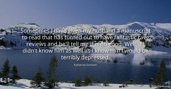 Dunham, Katherine. (2026, January 15). Sometimes I have given my husband a manuscript to read that has turned out to have fantastic rave reviews and he'll tell me it is no good. Well, if I didn't know him as well as I know him I would be terribly depressed. FixQuotes. https://fixquotes.com/quotes/sometimes-i-have-given-my-husband-a-manuscript-to-144269/