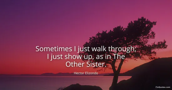 Elizondo, Hector. "Sometimes I just walk through; I just show up, as in The Other Sister." FixQuotes. January 16, 2026. https://fixquotes.com/quotes/sometimes-i-just-walk-through-i-just-show-up-as-93271/.