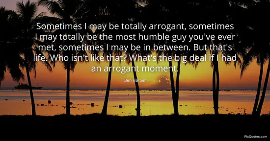 Harper, Ben. (2026, January 17). Sometimes I may be totally arrogant, sometimes I may totally be the most humble guy you've ever met, sometimes I may be in between. But that's life. Who isn't like that? What's the big deal if I had an arrogant moment. FixQuotes. https://fixquotes.com/quotes/sometimes-i-may-be-totally-arrogant-sometimes-i-62717/