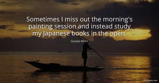 Klimt, Gustav. "Sometimes I miss out the morning's painting session and instead study my Japanese books in the open." FixQuotes. January 18, 2026. https://fixquotes.com/quotes/sometimes-i-miss-out-the-mornings-painting-7143/.
