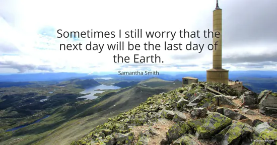 Smith, Samantha. (2026, January 15). Sometimes I still worry that the next day will be the last day of the Earth. FixQuotes. https://fixquotes.com/quotes/sometimes-i-still-worry-that-the-next-day-will-be-163101/