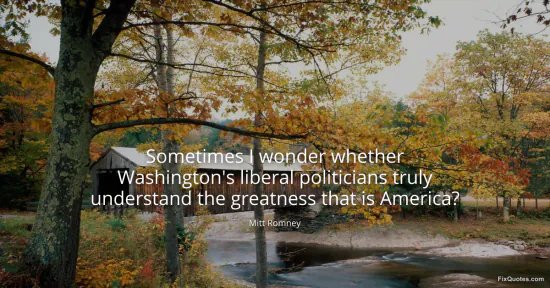 Romney, Mitt. (2026, February 19). Sometimes I wonder whether Washington's liberal politicians truly understand the greatness that is America? FixQuotes. https://fixquotes.com/quotes/sometimes-i-wonder-whether-washingtons-liberal-33370/