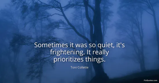 Collette, Toni. (2026, January 16). Sometimes it was so quiet, it's frightening. It really prioritizes things. FixQuotes. https://fixquotes.com/quotes/sometimes-it-was-so-quiet-its-frightening-it-124172/
