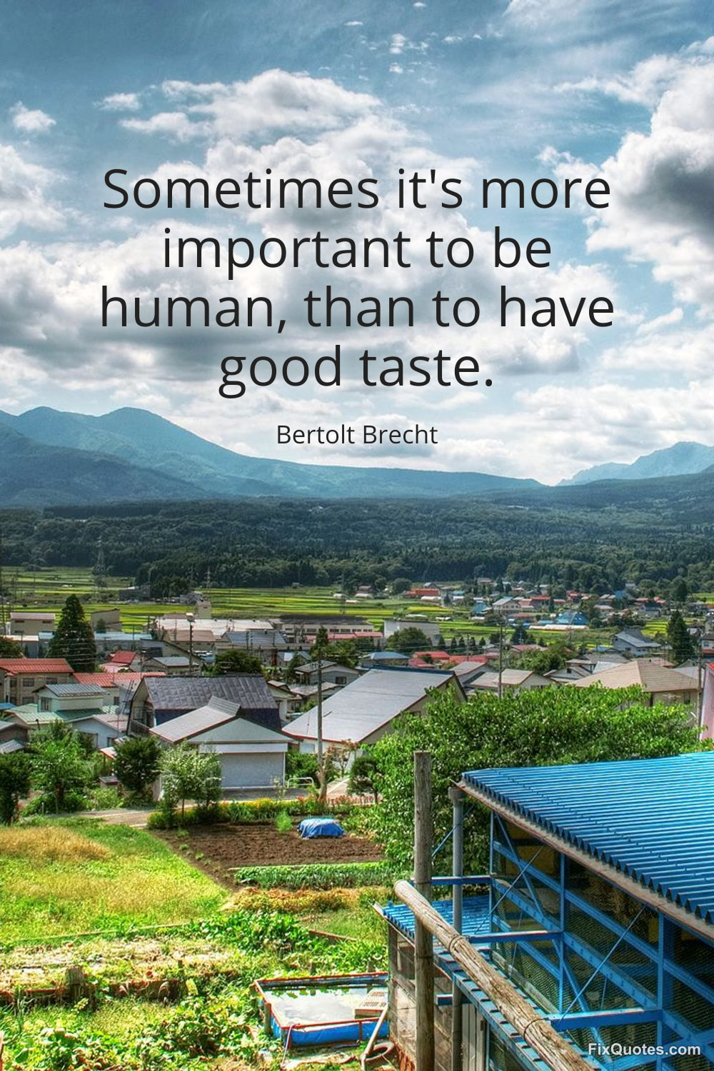 Brecht, Bertolt. (2026, January 18). Sometimes it's more important to be human, than to have good taste. FixQuotes. https://fixquotes.com/quotes/sometimes-its-more-important-to-be-human-than-to-12929/
