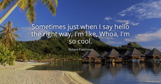 Pattinson, Robert. "Sometimes just when I say hello the right way, I'm like, Whoa, I'm so cool." FixQuotes. January 16, 2026. https://fixquotes.com/quotes/sometimes-just-when-i-say-hello-the-right-way-im-116561/.