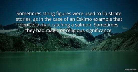 Leakey, Louis. "Sometimes string figures were used to illustrate stories, as in the case of an Eskimo example that depicts a man catching a salmon. Sometimes they had magic or religious significance." FixQuotes. January 15, 2026. https://fixquotes.com/quotes/sometimes-string-figures-were-used-to-illustrate-156693/.