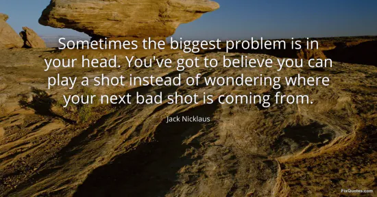 Nicklaus, Jack. (2026, January 15). Sometimes the biggest problem is in your head. You've got to believe you can play a shot instead of wondering where your next bad shot is coming from. FixQuotes. https://fixquotes.com/quotes/sometimes-the-biggest-problem-is-in-your-head-142643/