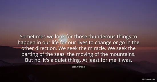 Vereen, Ben. (2026, January 16). Sometimes we look for those thunderous things to happen in our life for our lives to change or go in the other direction. We seek the miracle. We seek the parting of the seas, the moving of the mountains. But no, it's a quiet thing. At least for me it was. FixQuotes. https://fixquotes.com/quotes/sometimes-we-look-for-those-thunderous-things-to-109335/