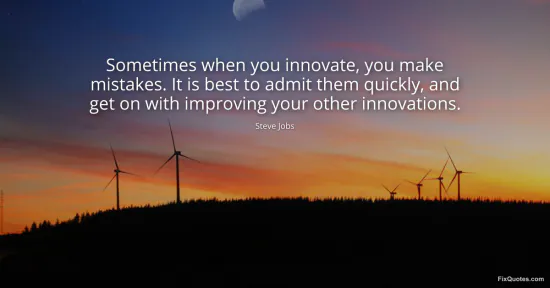 Jobs, Steve. (2026, January 18). Sometimes when you innovate, you make mistakes. It is best to admit them quickly, and get on with improving your other innovations. FixQuotes. https://fixquotes.com/quotes/sometimes-when-you-innovate-you-make-mistakes-it-17691/